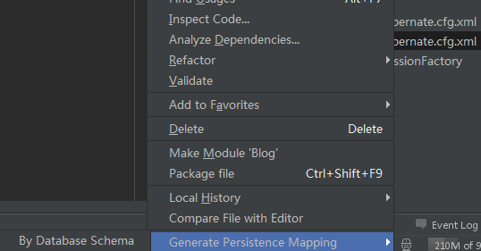 之后选中IDE侧面的 persistence 选中hibernate.cfg.xml 右击