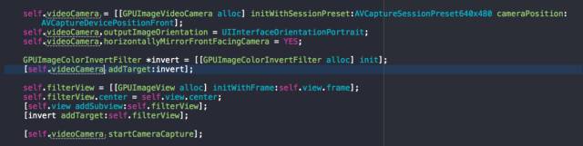 GPUImage 是一个开源的基于GPU的图片或视频的处理框架,其本身内置了多达120多种常见的滤镜效果。有了它,添加实时的滤镜只需要简单地添加几行代码。下面的例子是以摄像头的数据为源,对其实时地进行反色的操作(类似相片底片的效果):