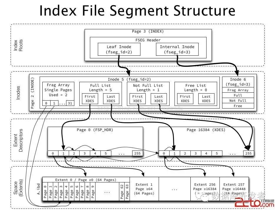 最后,innodb对于索引key的存储有一定的优化,包括合并同一个索引记录上面重复的字段,以及相邻索引记录中相同字段不重复存储等,会一定程度改进上面计算的结果,但是并不会有本质的改进。innodb的b+树结构如下图,本文不在此展开赘述。