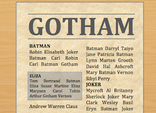 All text in the newspaper is arranged in text blocks. A text block is ultimately made up of nothing but names, and it may have a headline, but does not have to. Headlines are printed in bold face, and consist of a single name. All occurrences of that name within the text belonging to the headline arefamous, that is, they refer to that headline person. All names that are not headline material areordinary. Text blocks may contain other text blocks, including their headings (which work like sub-headings, or sub-sub-headings and so on). Thus, a name may be ordinary in one sub-text, but in another, it may be made famous by the headline of that sub-text.