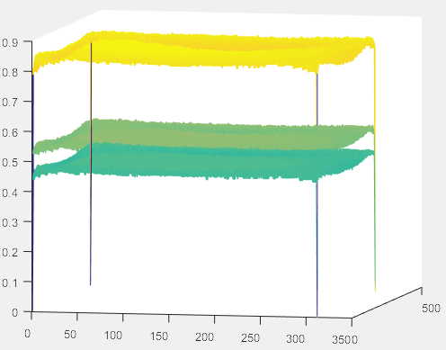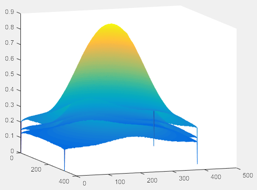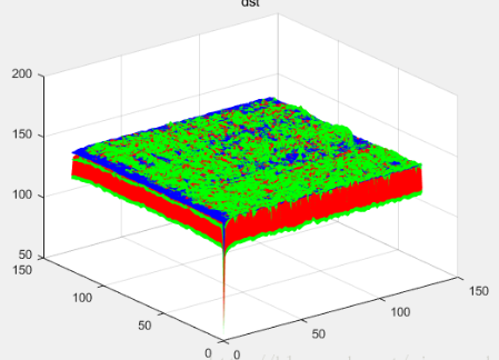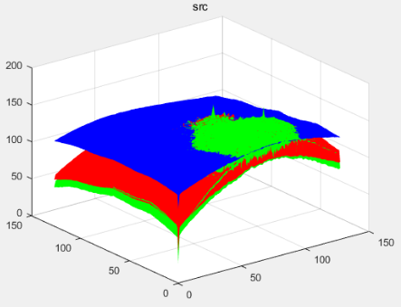 mesh(X1,Y1,im2double(r)); hold on; mesh(X1,Y1,im2double(g)); hold on; mesh(X1,Y1,im2double(b));