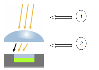 圈1 表示lens折射过来的光,圈2表示micro lens再次折射的光。可以看出,sensor的光电转换二极管接收到的光并不是 lens直接折射过来的,而是经过microlens再次折射过来的。所以你明白了什么呢?! 这也就是为什么图像边缘会变暗 的原因,光电转换二极管并不会全部接收到光能。这是LensShading中Y-shading的主要原因。