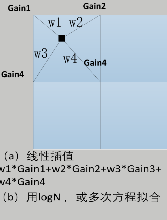 一般用双线性差值或者多项式拟合的方法,确定每个pixel的增益。
