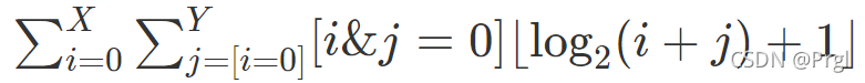 对X,Y一起进行数位DP,我们把每一位枚举数字的上限以及数字之前是否有前导零(当X,Y枚举到这一位二者都有前导零时才为true)都直接记录到这一位的状态里面,然后在枚举每一位的时候,枚举X,Y在这一位上面所有可能的组合(i,j)。如果i&j为1,那么X&Y就一定不为0,便不会对答案产生贡献,这种情况下的后面若干位就不用枚举了。否则,对答案产生了贡献,由于在X&Y=0的时候二者相加不会进位,所以对答案的贡献就是二者中最高位的1的pos + 1。以此阶段之后枚举的所有合法数字都会产生同样的这一个贡献,所以ans+=dfs()*(pos+1)(之后的数字lead都不会为true,所以这里的dfs返回的实际是合法数字的个数),否则ans+=dfs()(仅统计合法数字的个数,避免重复的计算)。