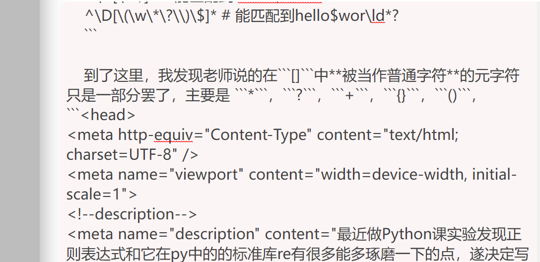 到了这里,我发现老师说的在```[]```中**被当作普通字符**的元字符只是一部分罢了,主要是 ```*```,```?```,```+```,```{}```,```()```,```$``` 这些元字符。