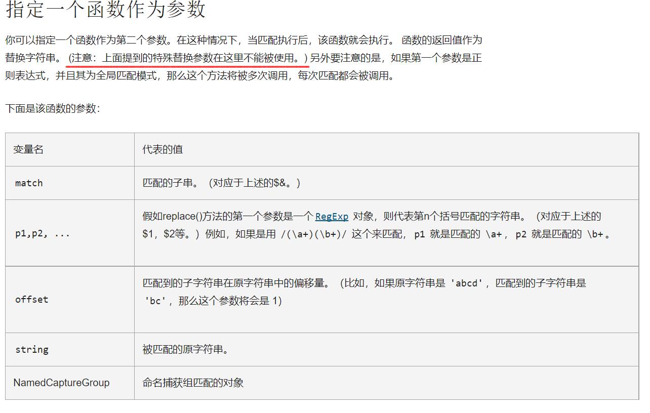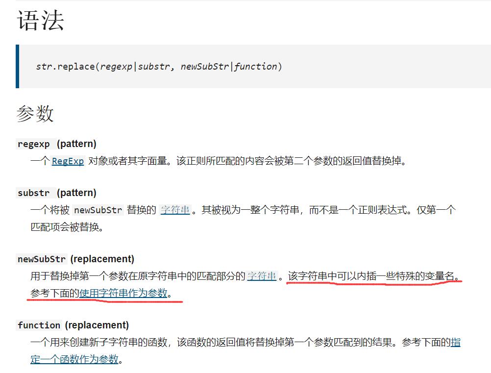 不查不知道,一查吓一跳,看到有老哥提到了replace函数接收的字符串不仅仅是字符串,我赶紧去MDN查了一下: