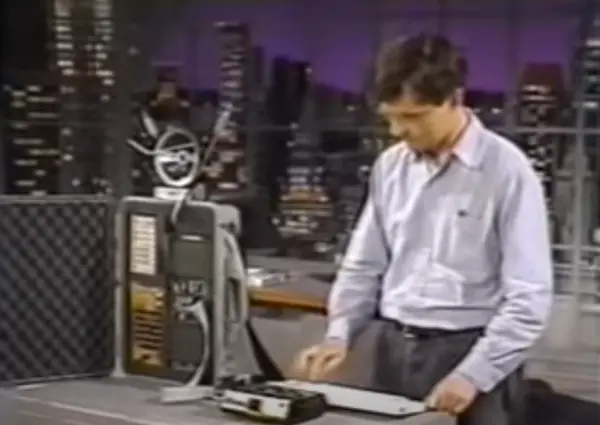 Rob Pike在节目上操作机器(这个机器假装能够控制演员动作)