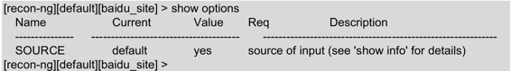 [recon-ng][default][baidu_site] > set SOURCE baidu.com