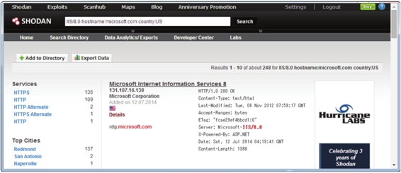 - IIS/7.0 hostname:YourCompany.com city:Boston表示搜索在波士顿所有正在运行IIS/7.0的Microsoft服务器。