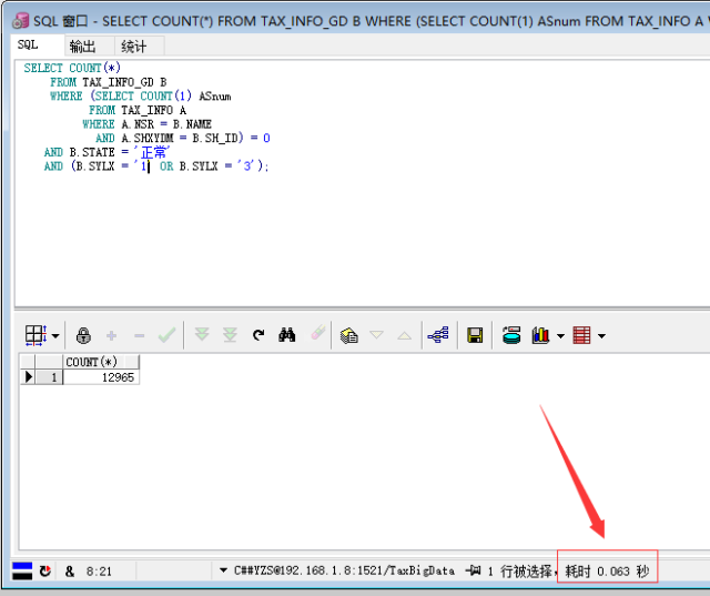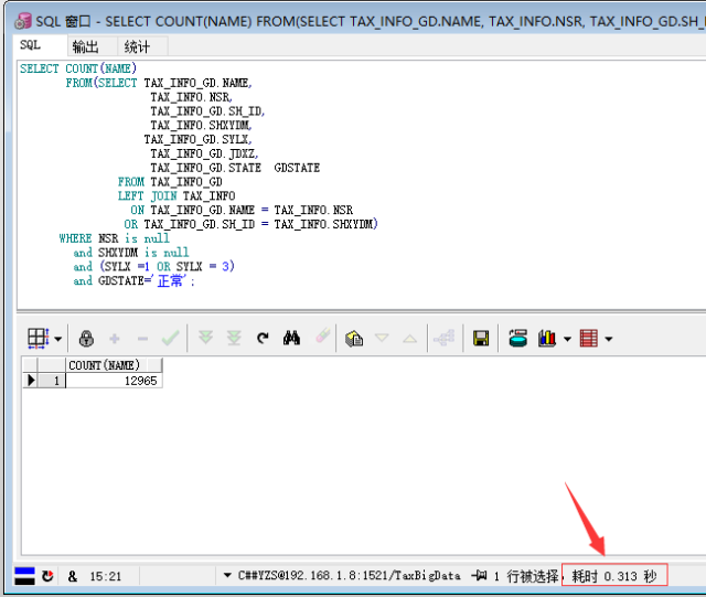 需求为查询国地税表和税源表中,国税有而税源没有的条目数,之前的查询如下: