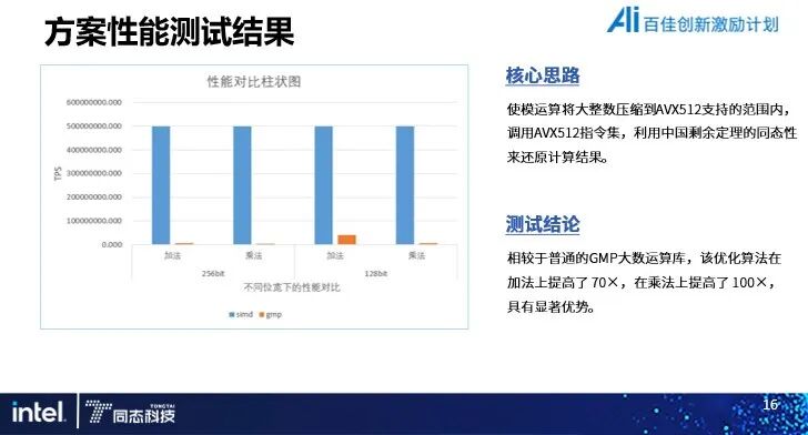 在算法优化的基础上,大整数运算是“同态构型”算法中,性能提升的一大环节。同态科技联合英特尔,以AVX-512指令集为切入点,通过中国剩余定理压缩数据,再利用并行计算提升大整数的运算效率,形成大整体运算优化方案。