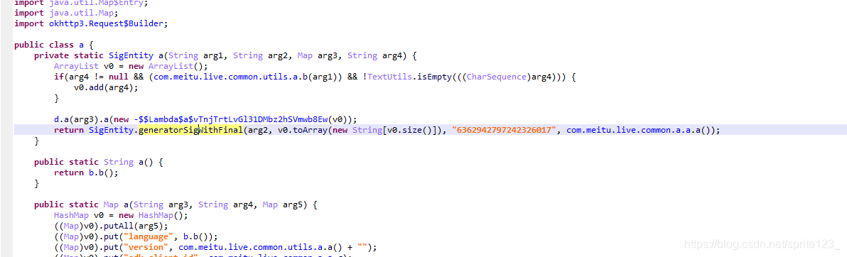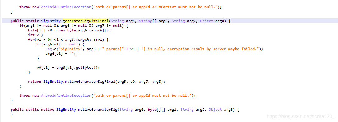 如果想知道这个方法怎么用,可以用frida hook generatorSigWithFinal看看参数是什么