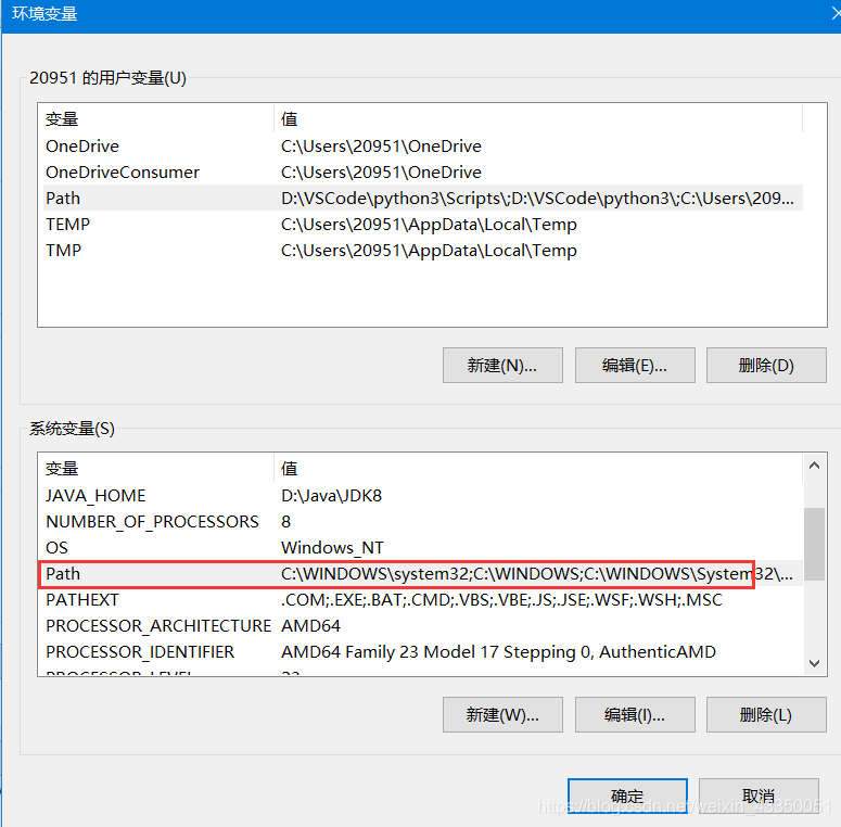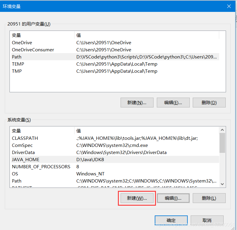 双击path-》添加解压后的JDK8下bin文件夹路径(路径根据自己的解压情况而定)