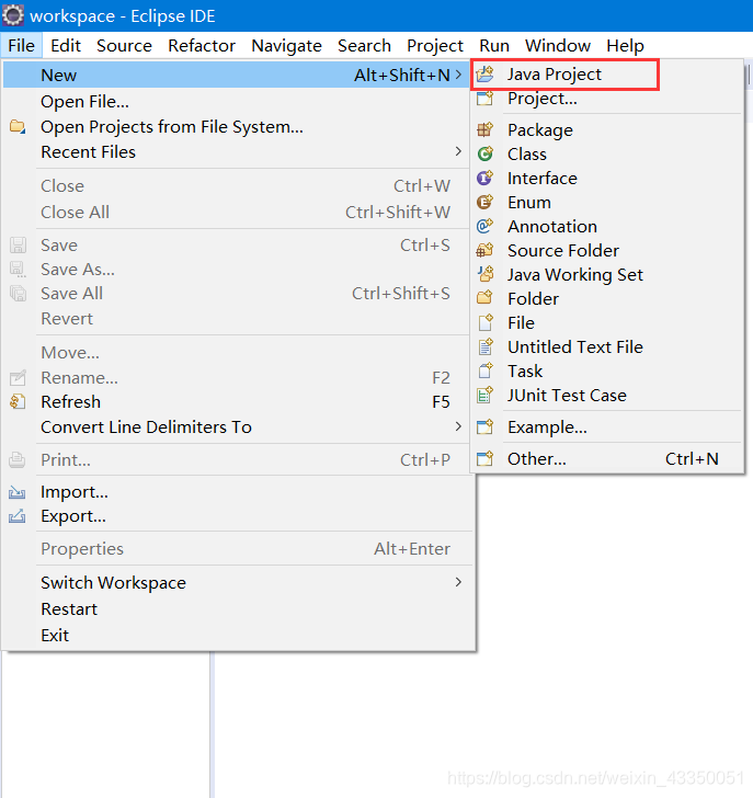 注意:若没有Java project,点击project在里面搜索选中即可。