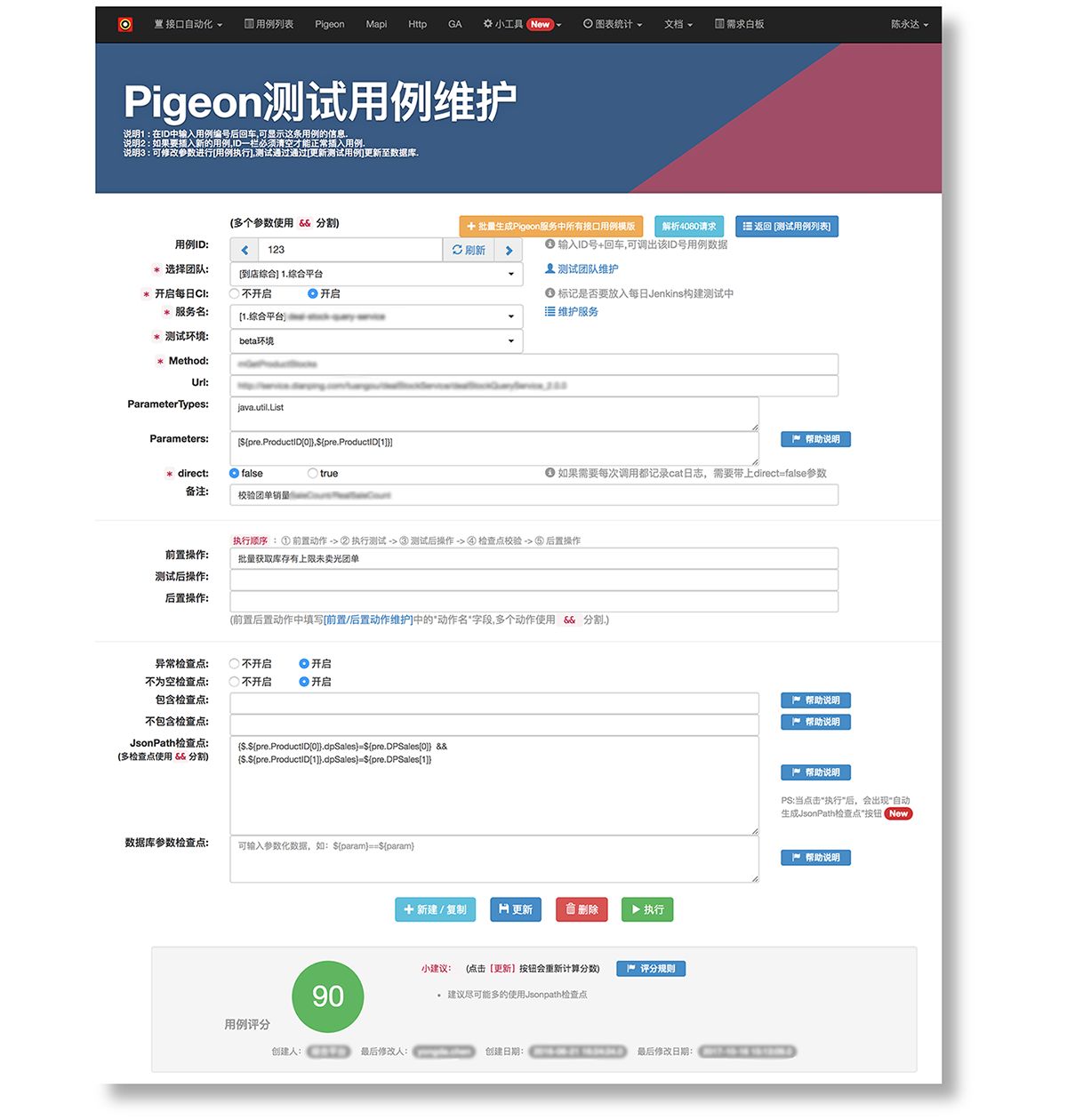 同时在维护接口自动化测试的时候,都会看到用例评分的情况,来协助QA提高用例编写的质量。