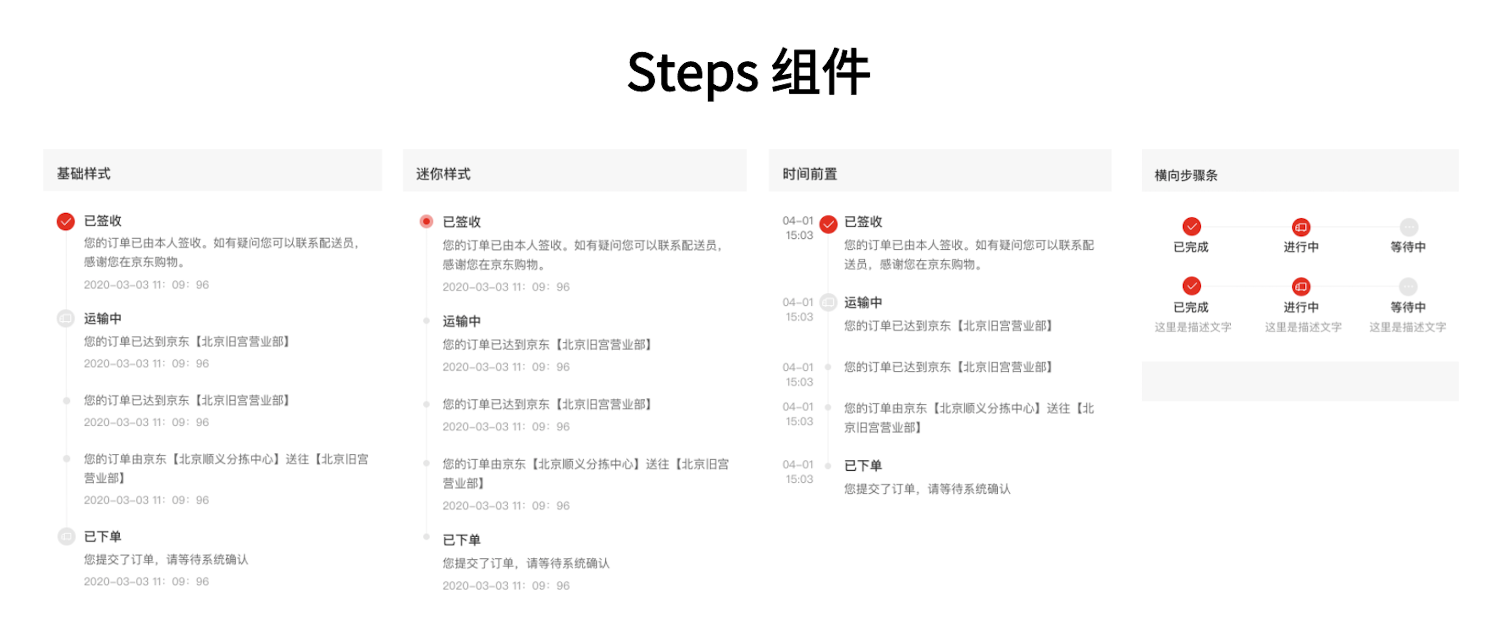 一般来说在物流信息、流程信息等内容的展示需要使用到这个组件,可以像下面这样使用它。