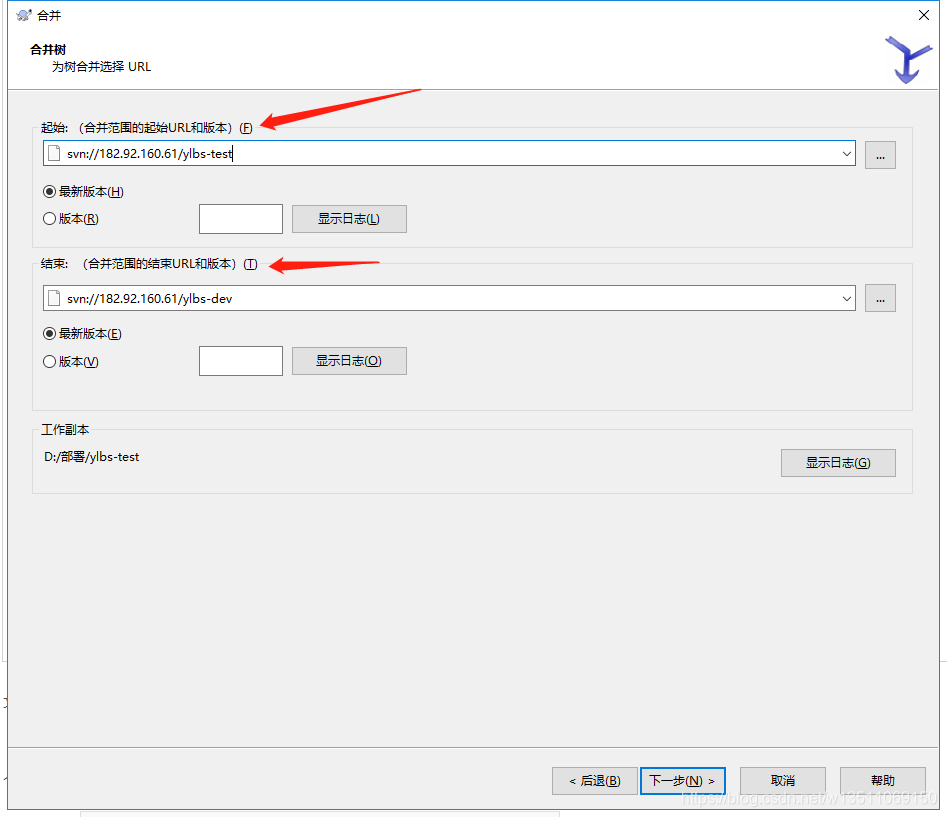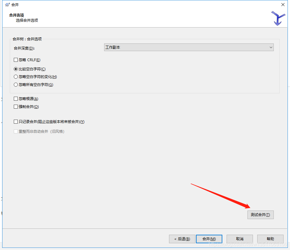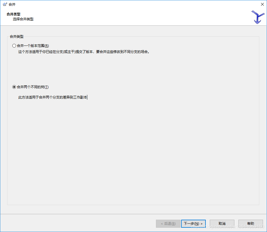 可以从主干合并到分支,也可以从分支合并到主干,根据需要可以选择合适的选项,如下图: