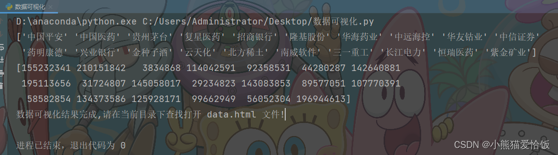 print('数据可视化结果完成,请在当前目录下查找打开 data.html 文件!')