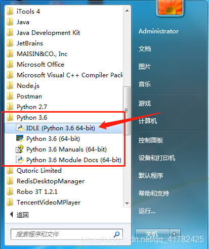 1>在windows开始菜单中打开IDLE