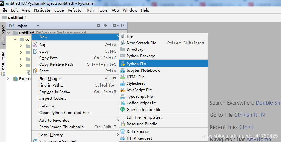 5>右击项目名untitled,New---Python File 创建一个python文件
