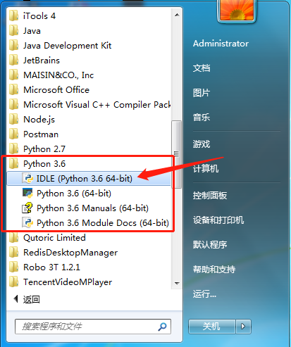 1>在windows开始菜单中打开IDLE