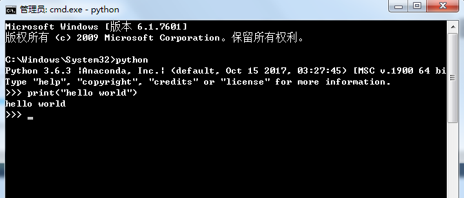 3>在Windows提示符cmd中也可以进入Python交互模式(以管理员身份运行cmd)