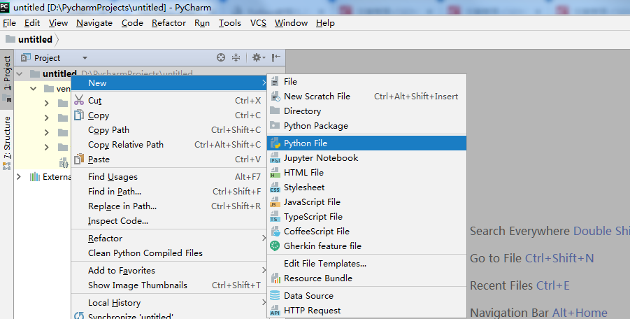 5>右击项目名untitled,New---Python File 创建一个python文件