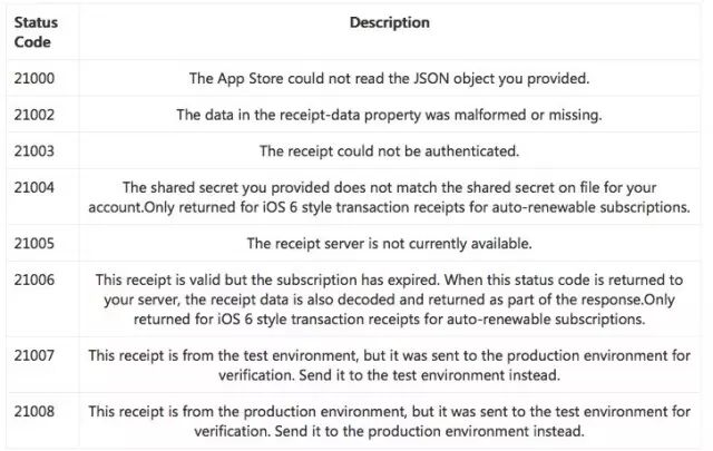 二次验证,请注意区分宏, 测试用沙盒验证,App Store审核的时候也使用的是沙盒购买,所以验证购买凭证的时候需要判断返回Status Code决定是否去沙盒进行二次验证,为了线上用户的使用,验证的顺序肯定是先验证正式环境,此时若返回值为21007,就需要去沙盒二次验证,因为此购买的是在沙盒进行的。