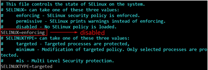 SELINUX=disabled