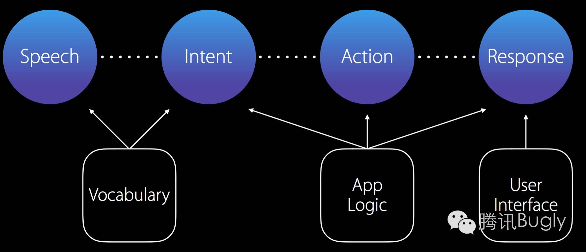实现 SiriKit 相关功能时,我们并不需要真正对语音进行识别,语音的识别工作会由 Siri 完成。Siri 识别完语音后,会将语音要完成的功能抽象成 Intent 对象传递给我们,而我们的接入工作主要是与这些 Intent 对象打交道,并不会涉及到自然语言处理(NLP)的技术。