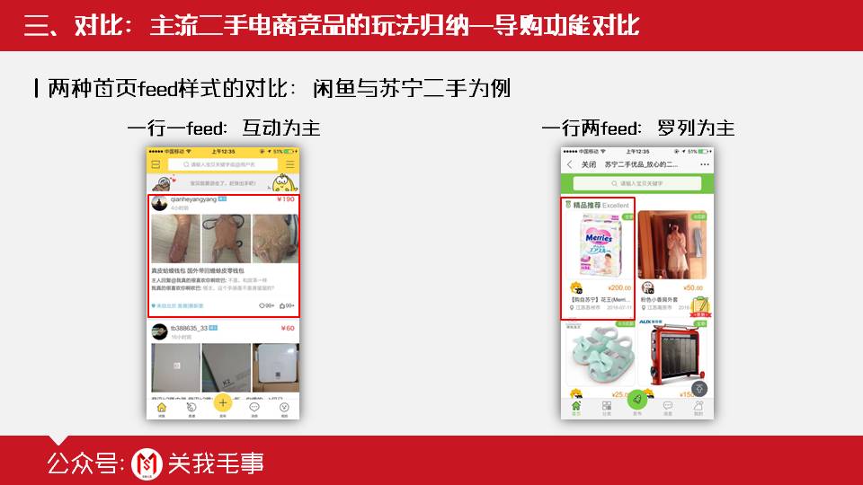 以上两种feed样式的设计,孰的用户体验好,孰对二手交易的转化效果高,只有各自项目团队心里清楚,缺乏数据支撑,笔者这里也不敢妄下结论。