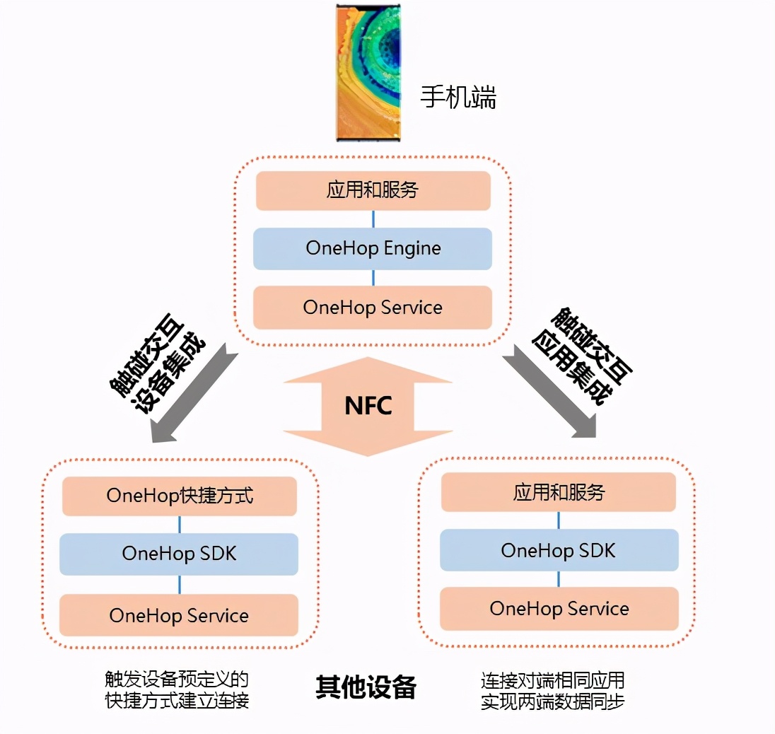 碰一碰能力(OneHop Engine)是通过 NFC 来解决 App 跨设备接续难、设备配网难、传输难的问题的一个方案。