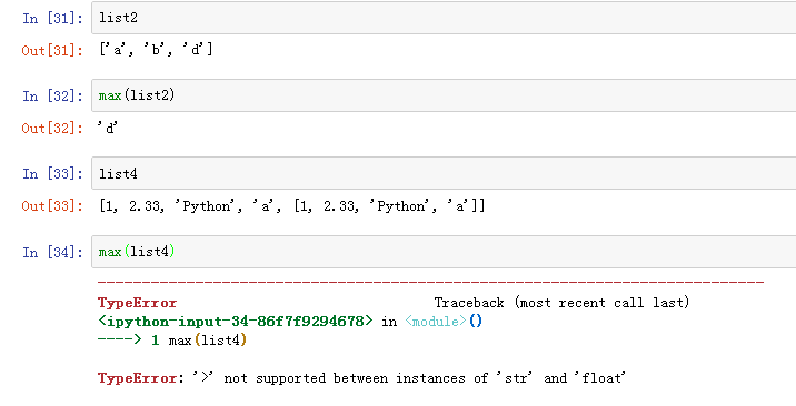 但是list4 中的取最大值报错了,提示是str和float不能比较大小