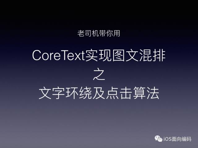 之前的文章老司机讲过,我们在drawRect中绘制文本的时候主要是根据Path去绘制