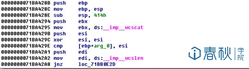 为空,那么接下来的条件跳转不成立,程序就会来到0x71BA42AE的位置执行。如果指向第一个字