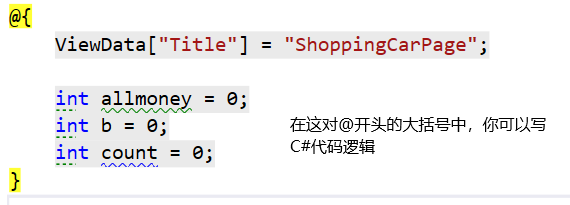 作为渲染HTML页面的功能,Razor的基本语法是 @{多行C#代码} 或者 @单行C#代码,Razor文件的扩展名为.cshtml