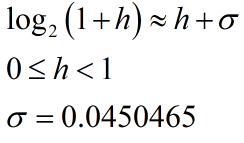 如圖 7. 所示,利用近似 Binary Logarithm 公式,可以將圖 6. 中的 log 函數拿掉,用近似公式