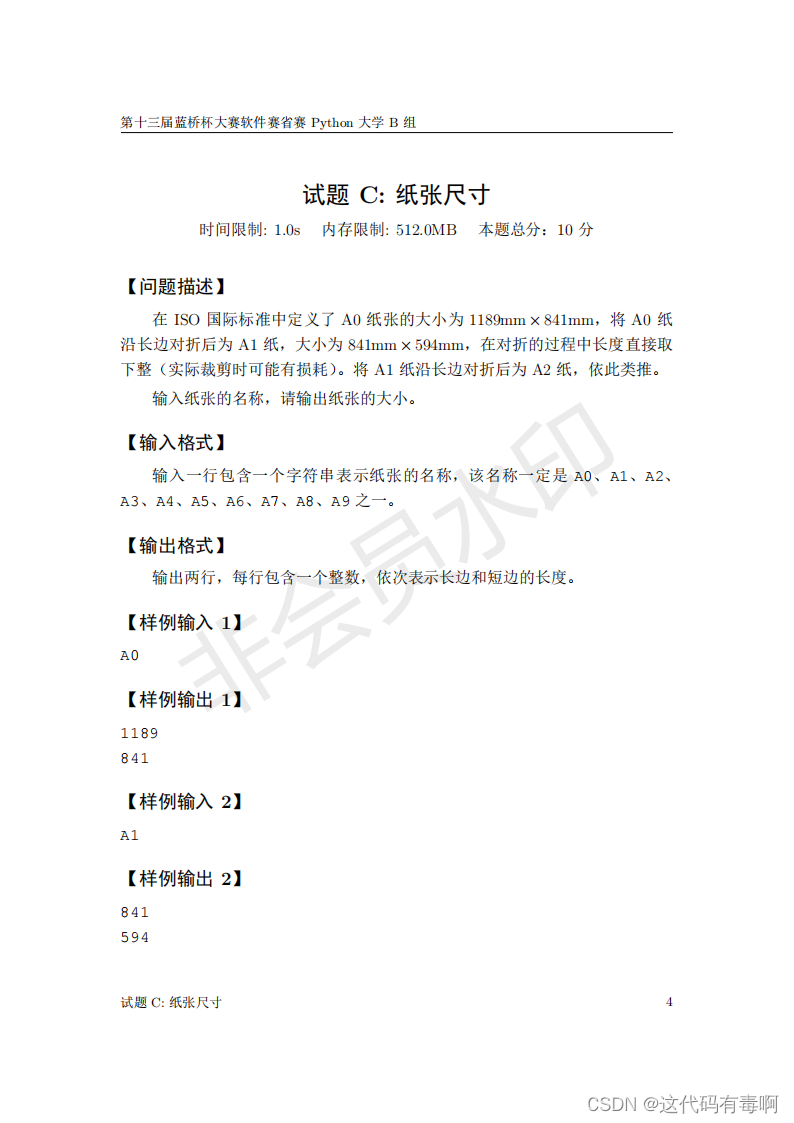 - 纸张尺寸【第十三届蓝桥杯省赛C++C组】