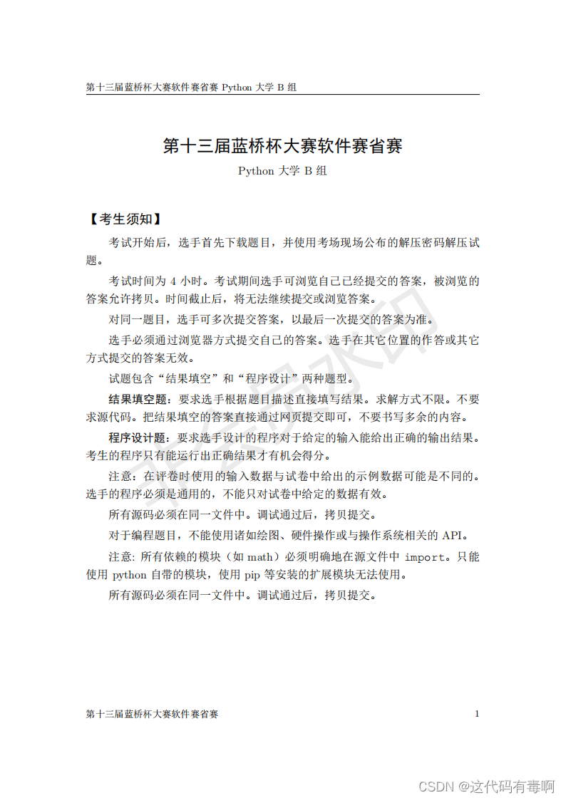 蓝桥杯真题——第十三届蓝桥杯大赛软件赛省赛 Python 大学 B 组