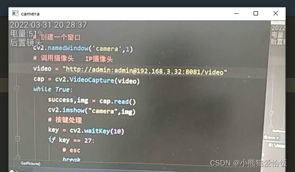 拍照呢,是用手机的摄像头,软件用的是:IP摄像头(安卓),因为在同一个局域网内,打开APP,里面出现的网址就是摄像头的地址
