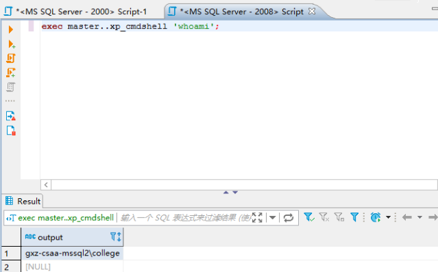 exec sp_configure'xp_cmdshell', 1; //开启xp_cmdshell