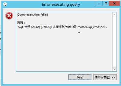 此时若使用xp_cmdshell,会提示“未能找到存储过程”,如下: