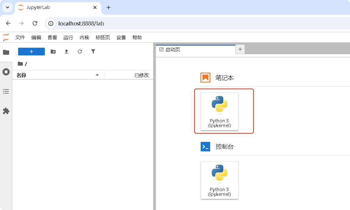 在启动页上点击“笔记本”下面的python图标创建一个标签页就可以开始敲代码了。