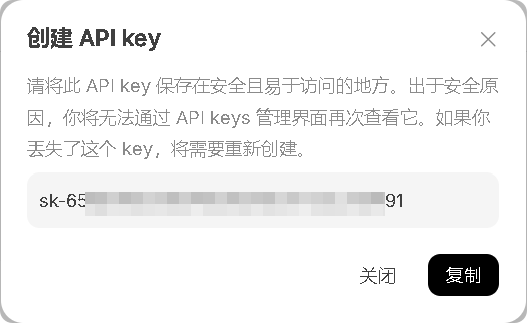 API_KEY='sk-65f******5a491' # 这里替换成自己设置的API KEY
