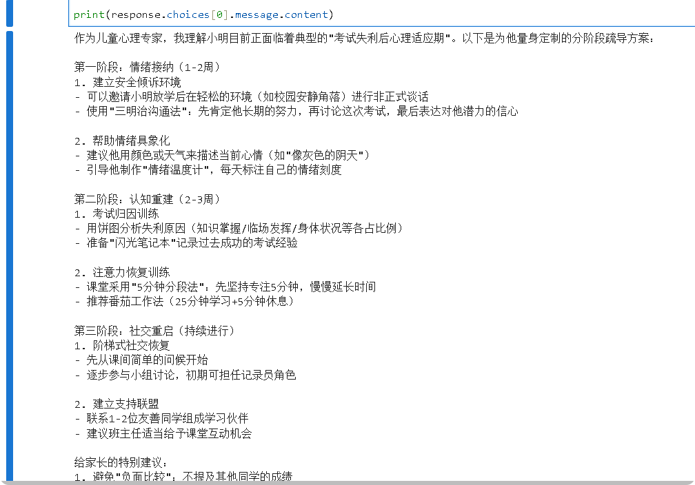 messages = [{'role': 'user', 'content': f'''小明是初三学生,最近一次模拟考试成绩不理想,上课无法集中精神听课,不再与同学交流。请根据小明的情况给予心理疏导意见。'''}]