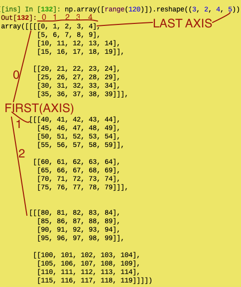 => array([[[0, 1, 2], [3, 4, 5]]])np.array([range(6)]).reshape([1, 2, 3]).reshape([-1])