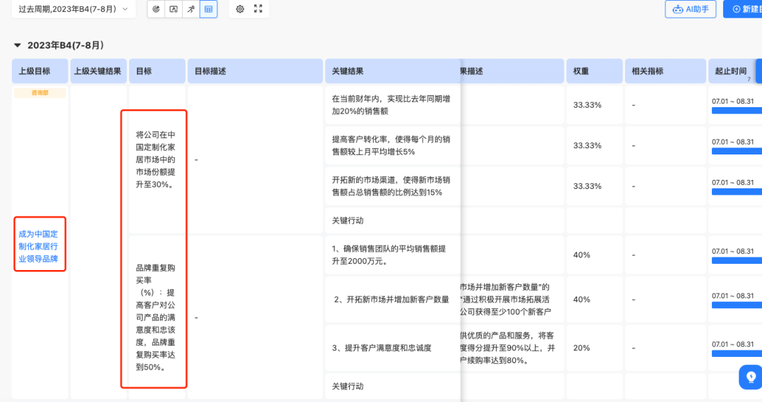 例如:某家具装饰企业的“目的”是“成为中国定制化家居行业领导品牌”,