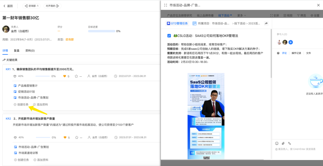 制定策略时,我们可以使用日事清做拆解,找到实现目标的具体举措。