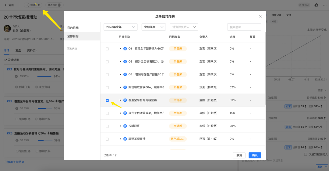 在经过一番努力之后,作为目标负责人,需要在OKR中工具中更新进度、描述目前的状态,并评估对实现目标的信心指数。