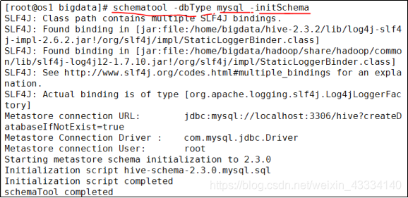 四、初始化元数据库(hive2.x之后必须手动初始化)